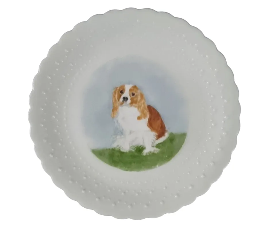 A rare, vintage, hand-painted plate understood to be from the Limoges pottery, France; featuring a beautiful Blenheim.