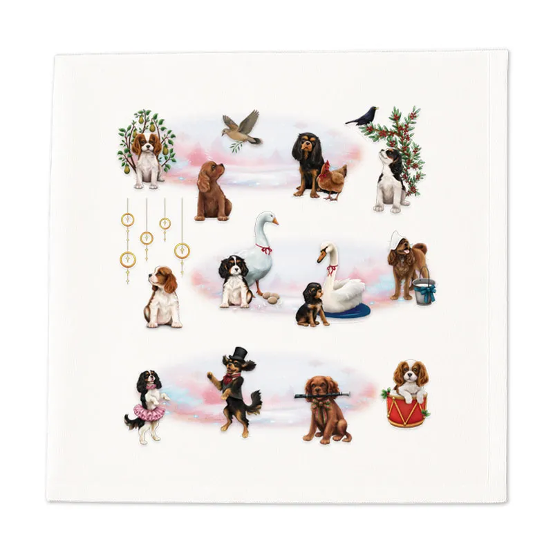 Brighten up the Christmas table and party with these exclusive 12 Days of Christmas Cavaliers napkins, sold as a pair.