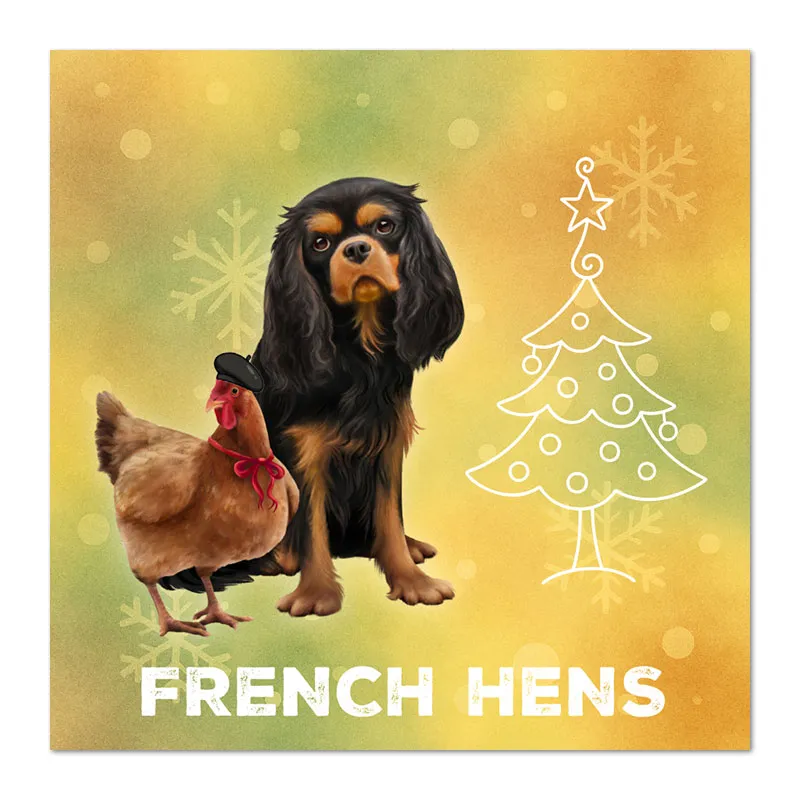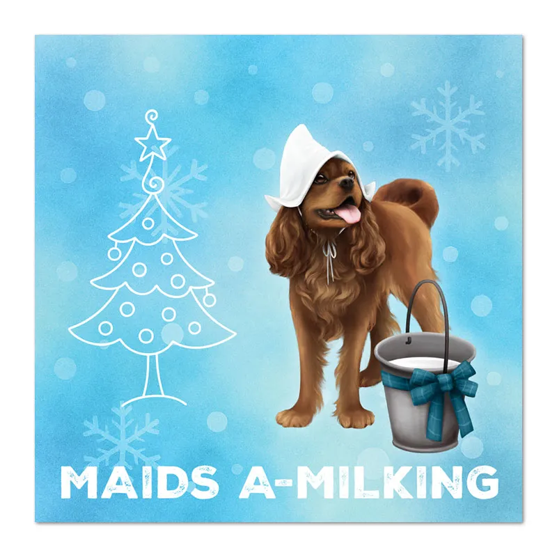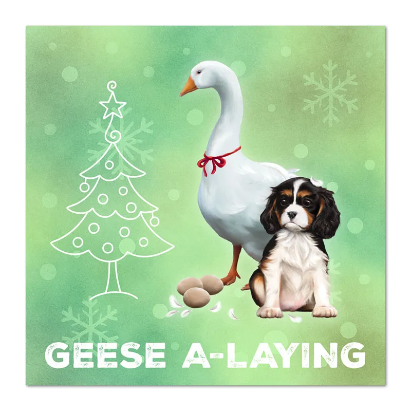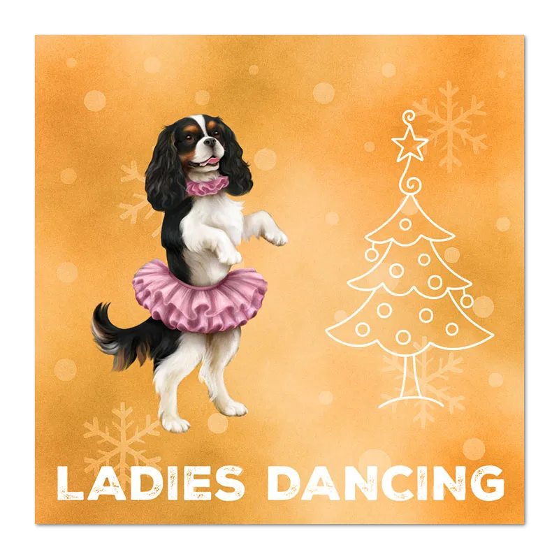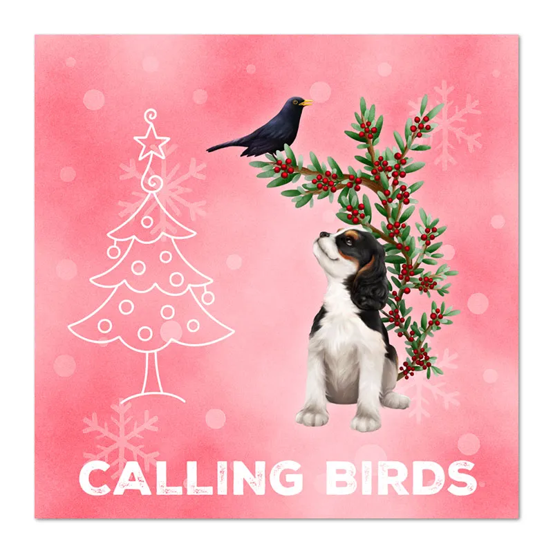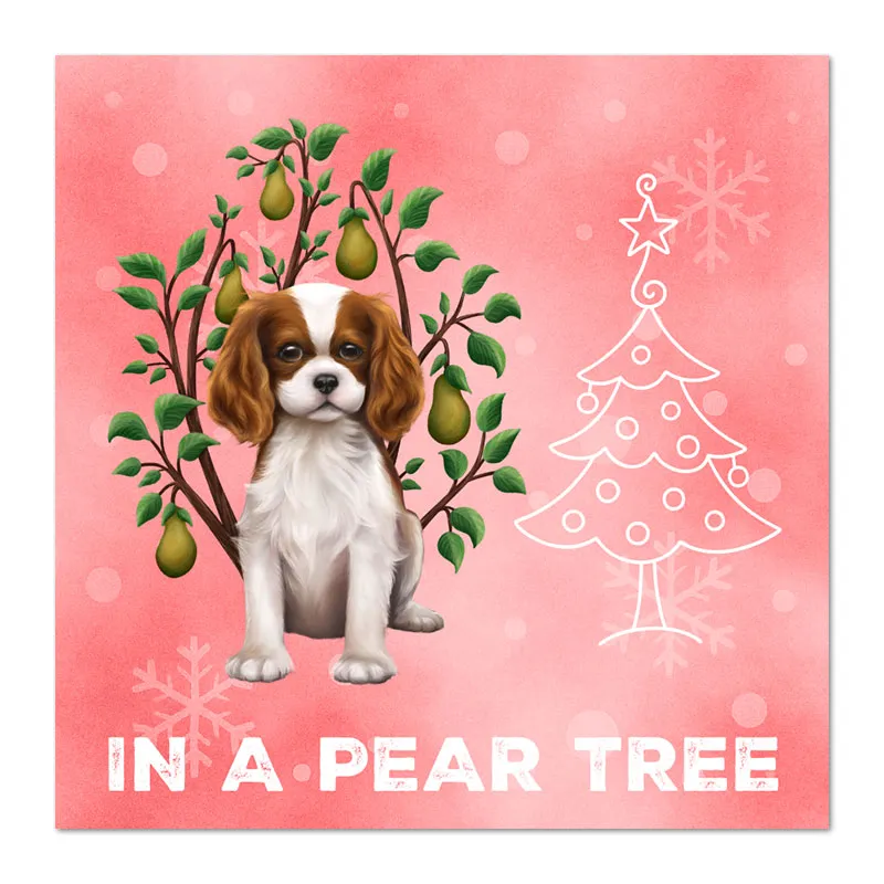 Our unique Cavalier King Charles Spaniel Christmas cards put a delightful new twist on the classic "12 Days of Christmas." Featuring 12 exclusive designs, these cards are perfect for spreading joy – you could even send the full series to one person, day by day!