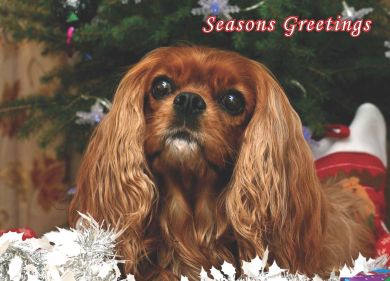 Produced exclusively for Cavalier Matters in the UK. Pack of five notelet christmas cards.