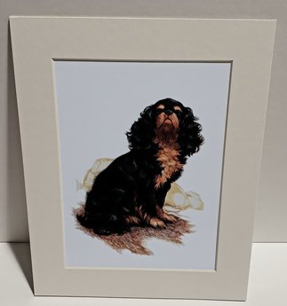 This is a very regal looking black and tan posing for the camera. A mounted print.
