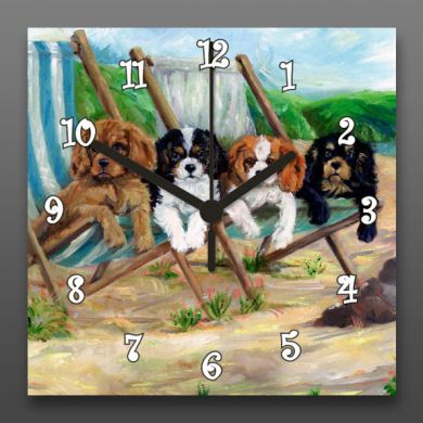 The Beach Boys clock features four Cavalier friends having a day out at the beach.
