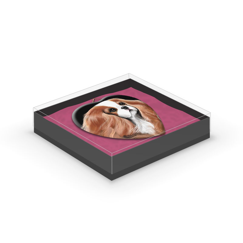 It is available in all four coat colours: Black & Tan, Blenheim, Ruby and Tricolour.