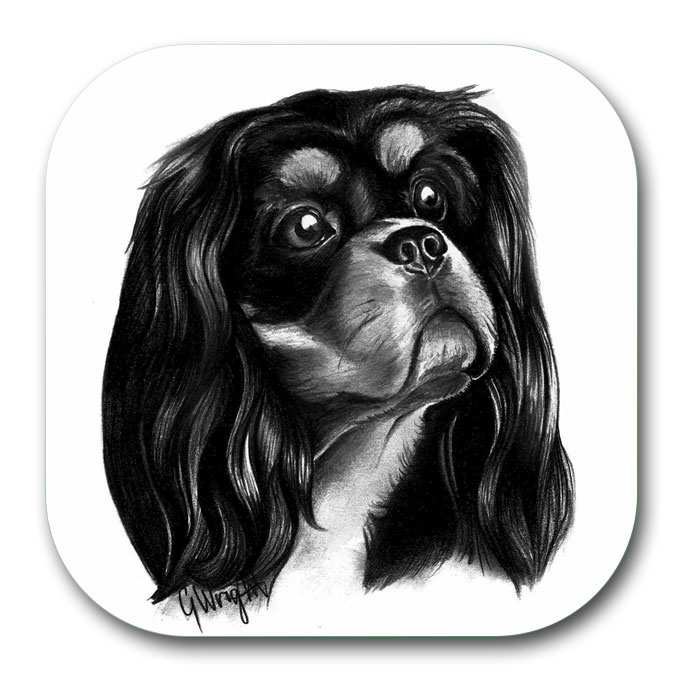 A gorgeous hand drawn black and tan Cavalier coaster, exclusive to the Cavalier Gift Shop.