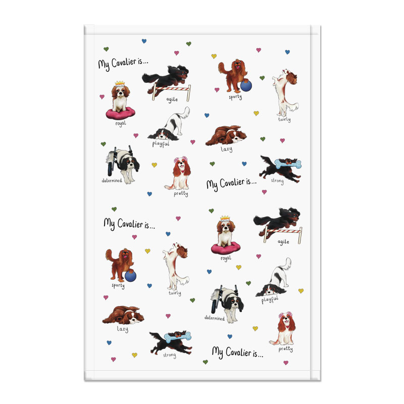 This lovely Cavalier Characters novelty styled 100% Cotton Tea Towel is exclusively designed for Cavalier Matters.