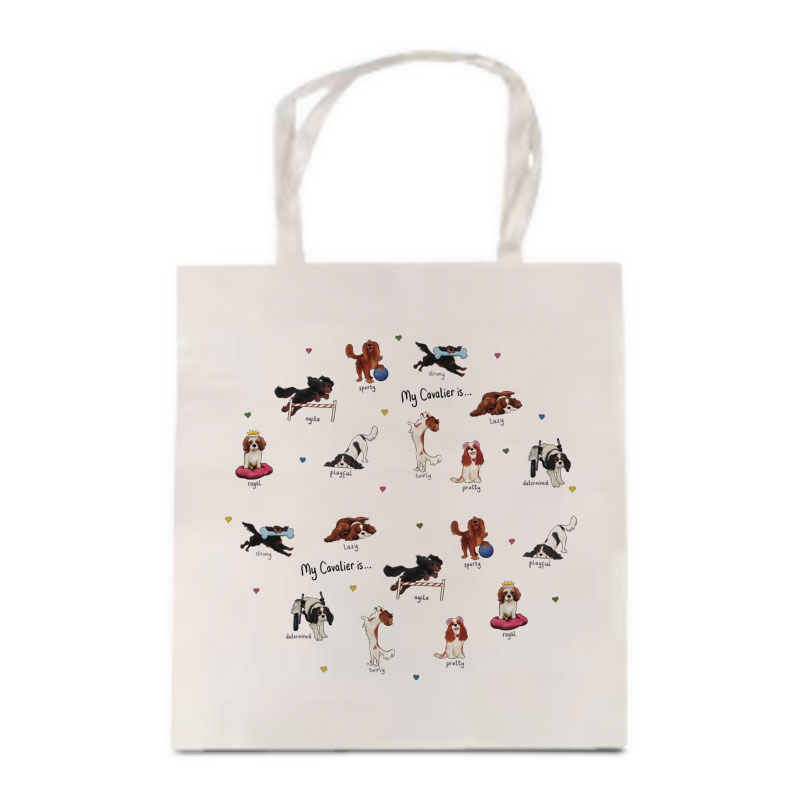 This design depicts the lovely Cavalier Characters, also shown here close-up. The perfect handy bag for yourself or someone special.