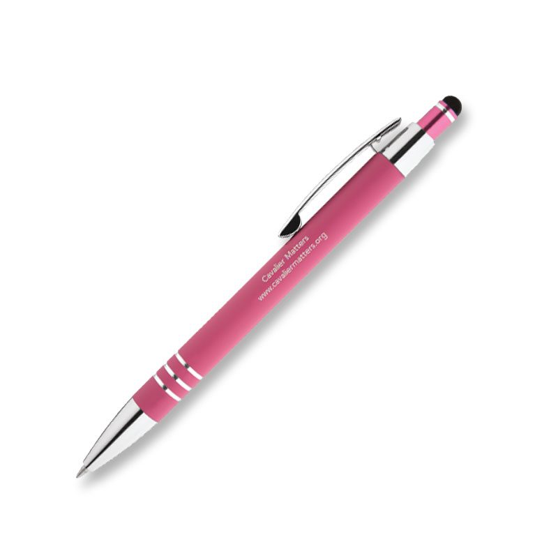 Our charity's name and our Cavalier King Charles Spaniel support website address (www.cavaliermatters.org) is laser engraved on the barrel. The ink is black.