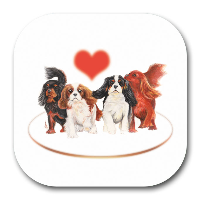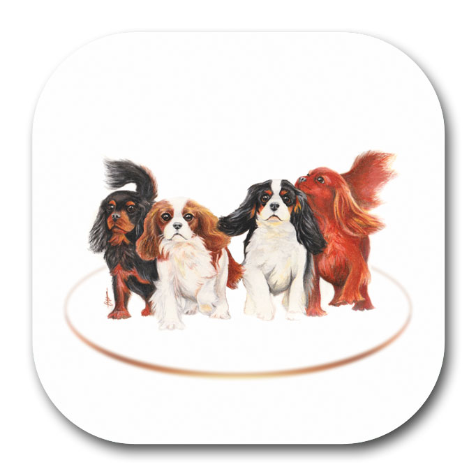 Another exclusive design to Cavalier Matters, the Cavalier Walk coaster features a group of Cavaliers out for a stroll. One of each coat colour is in the group.