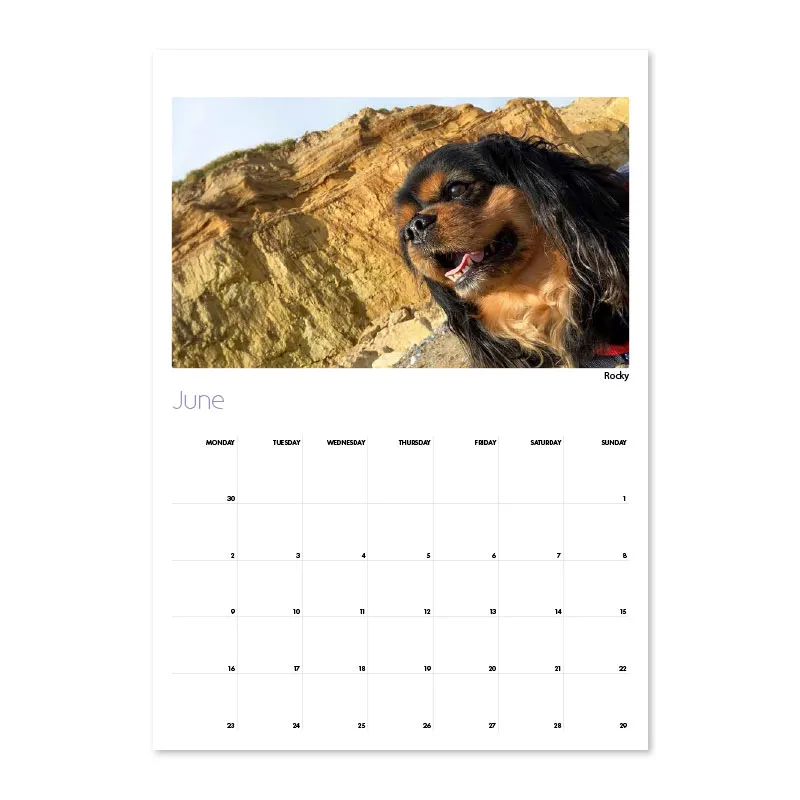 The calendar is A4 size (210mm x 297mm) and features spaces to write your notes and appointments for each day, and a pull-out hook for hanging.