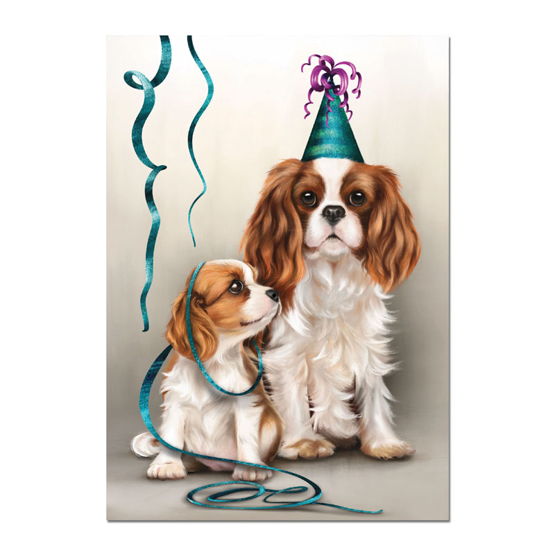 Another beautiful and exclusive design for Cavalier Matters, these celebration cards can be used for any event you wish - birthday, Christmas, congratulations, party, exam results and driving test for the Cavalier-lover.
