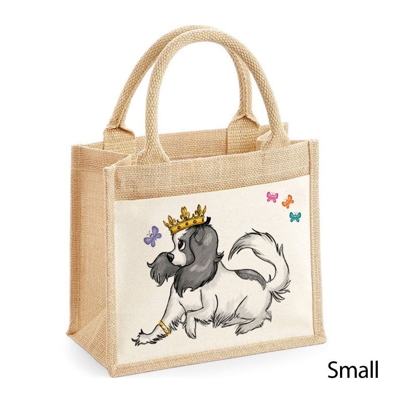 A sturdy jute shopping bag featuring our exclusive Coco Cavalier and the Butterfly design.