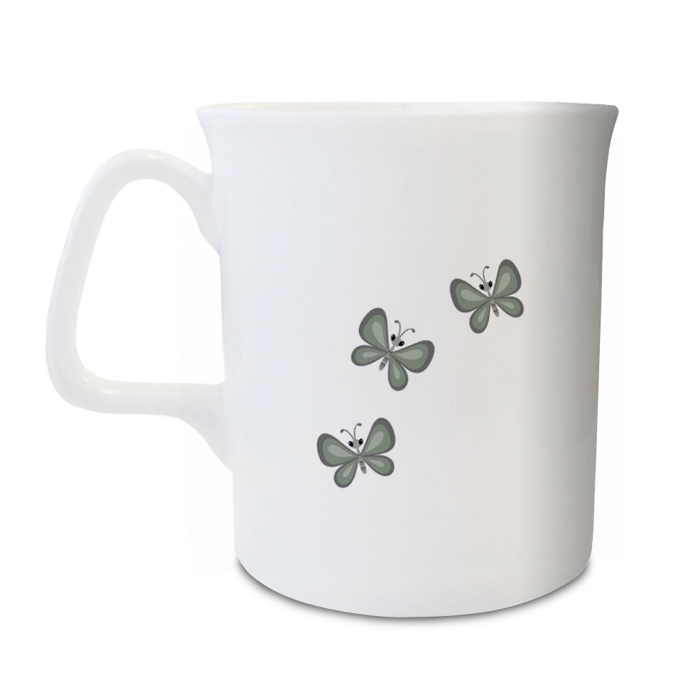 Coco and the Butterfly mug, with more butterflies on the other side.