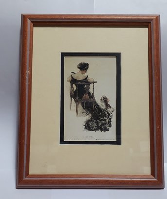 This is a lovely vintage postcard of a lady relaxing and her little dog wanting her attention.