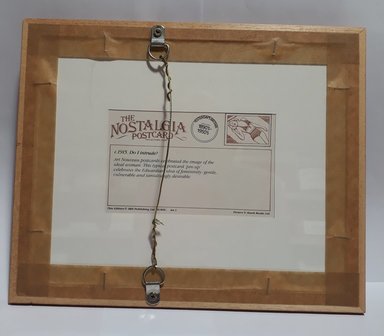 This comes in a wooden frame, and the back of the postcard, which is blank, can be seen through a glass panel at the back of the frame.