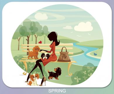 Each mat measures approx 26cm by 20cm, and features either a spring, summer, autumn or winter scene with Cavaliers in every main coat colour.