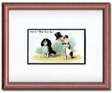 This charming vintage postcard, circa early 1900's, features a Basset Hound raising his top hat to a Tricolour Cavalier King Charles Spaniel, who doesn't look too impressed!