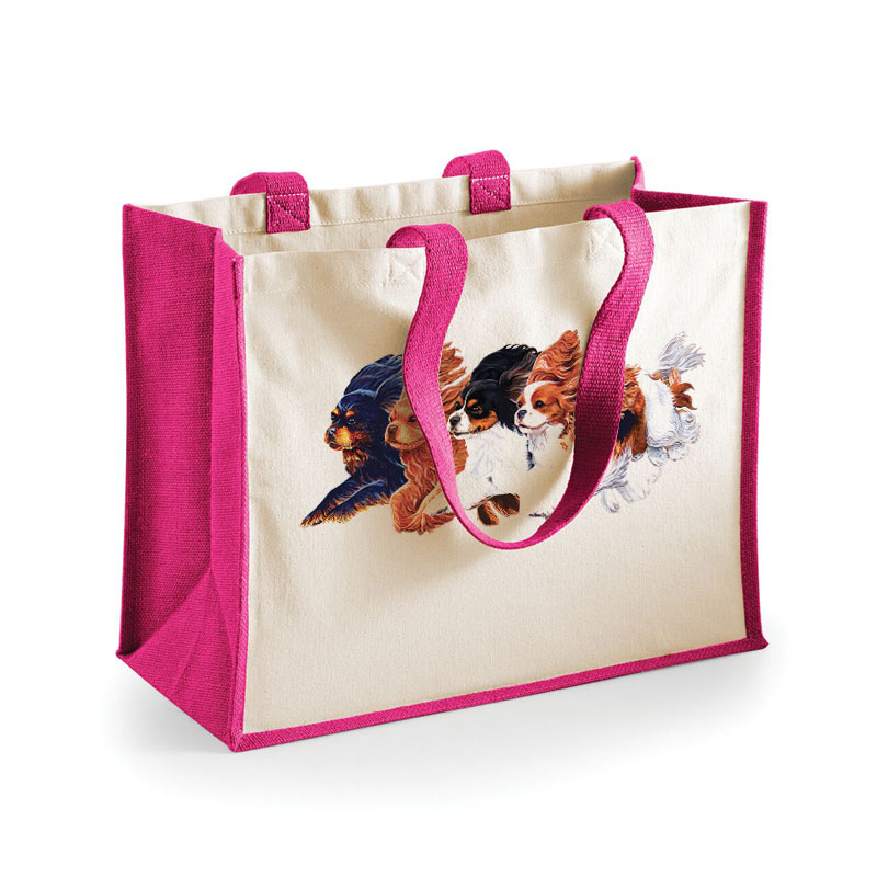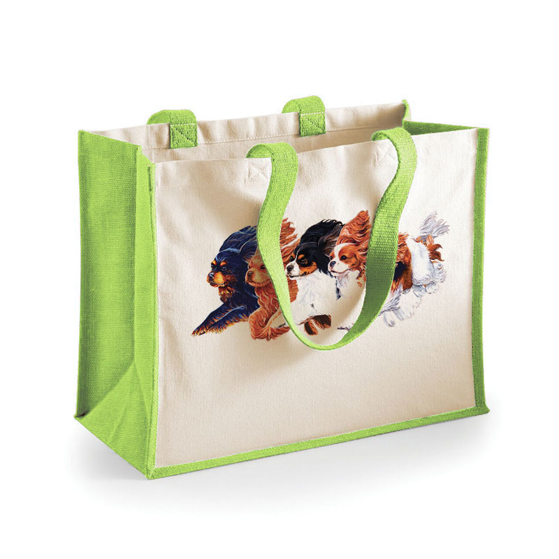 Our eco-frendly natural jute and cotton canvas shopper bag features the evergreen and much admired Flying Cavaliers (exclusive to Cavalier Matters) and is available in four gorgeous colours to suit every taste.