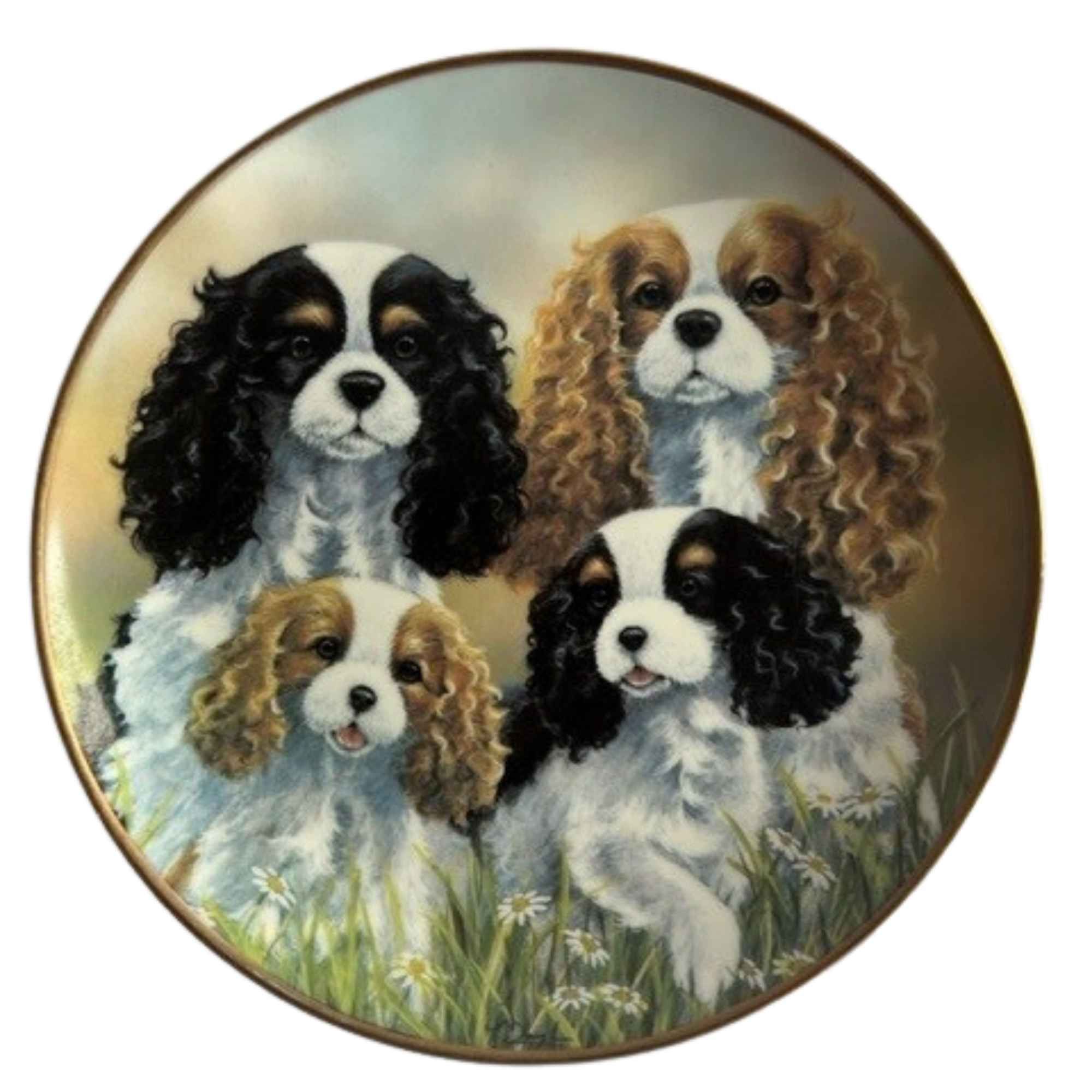 Paul Doyle who became a professional artist after a successful career in the finance industry and became a superb artist. it depicts a beautiful Cavalier, the detail and colouring are beautiful, created using fine porcelain, this exceptional 8 inch (20cm) plate is hand-edged with a luxurious band of 22-ct gold and displays DANBURY MINT STAMP back stamp.
