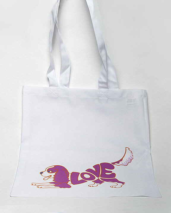 White tote bag measures 35.5cm wide by 41cm tall, with 38cm long handles.