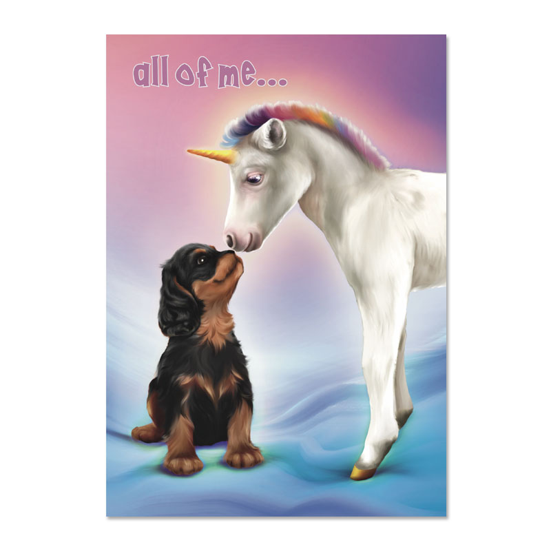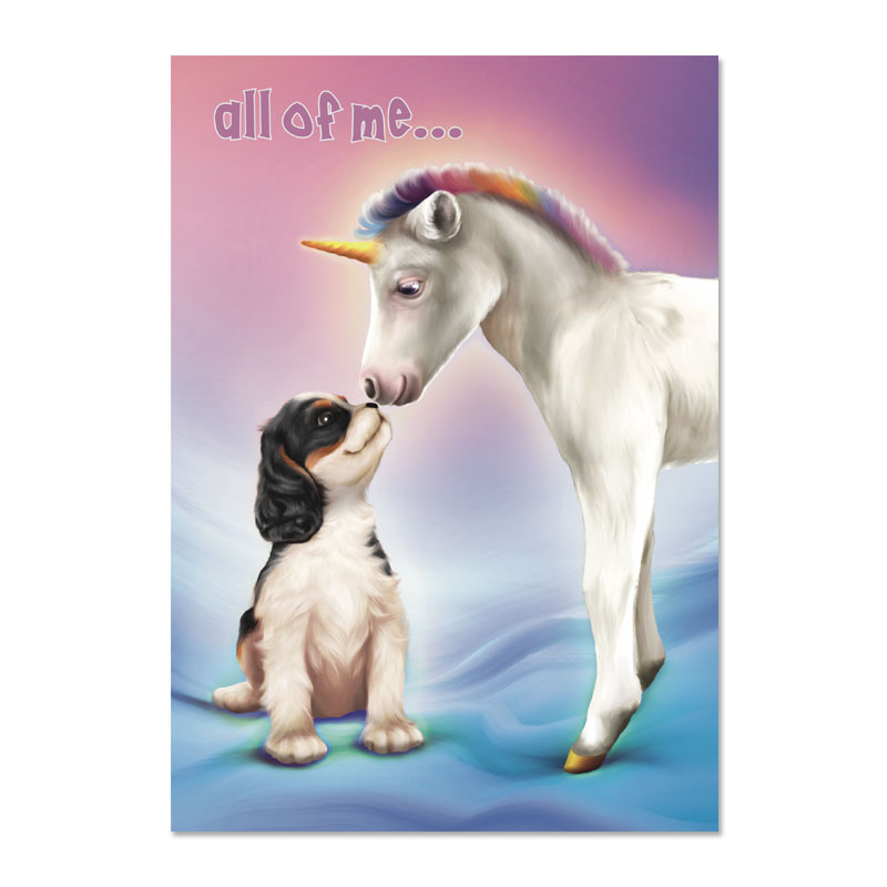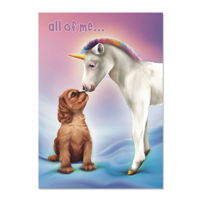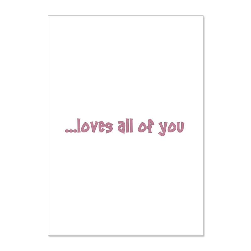 The card reads "all of me..." on the outside and "...loves all of you" on the inside. Available in all four coat colours (please select).