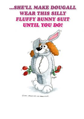 Molly and Dougall present this lovely  'Get Well Soon' card, which is exclusive to Cavalier Matters. Cheer up a poorly friend or relative with an extra picture inside of Dougall dressed in a bunny suit!