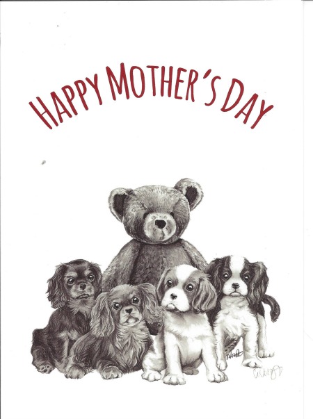 Our latest design featuring the gorgeous pencil puppies and their teddy for Mother's Day.