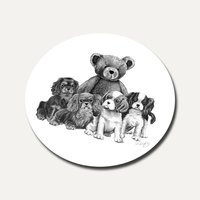 Our cute pencil pups are back with their favourite teddy in this lovely round coaster.