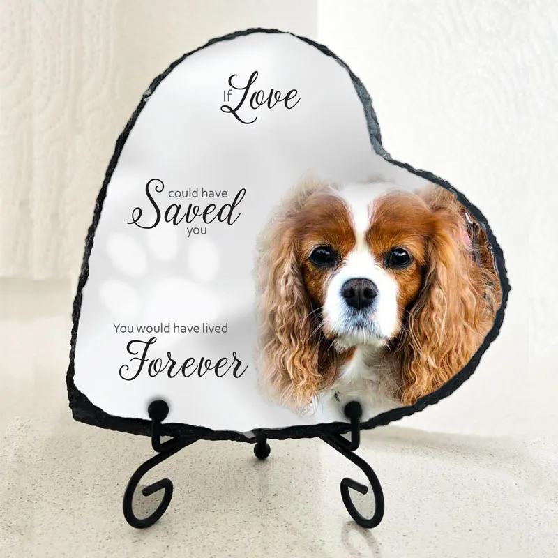 The heart bears the inscription "If love could have saved you You would have lived forever". It measures approx. 15 x 15cm and comes with the stand shown.