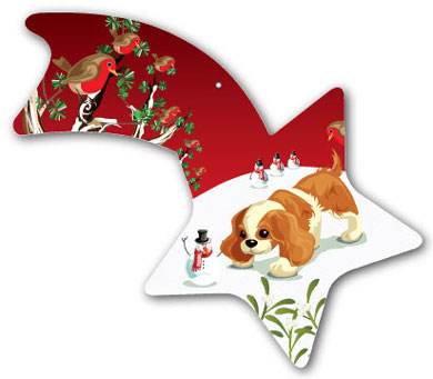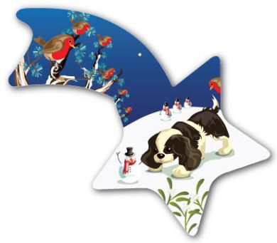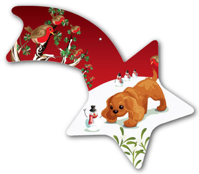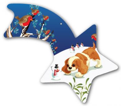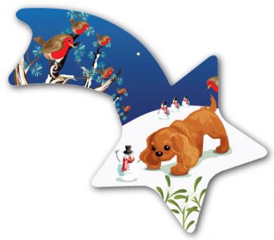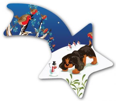 Available in all four coat colours, all with a Christmassy red sky on one side and a rich night-time blue sky on the other. This is a hanging tree decoration, and comes with a lovely Gold Cord.