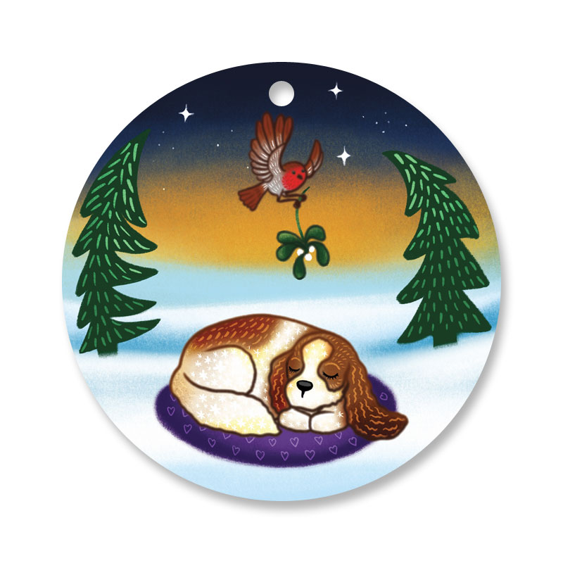 New and exclusive to Cavalier Matters Gift Shop, The Robin and The Snowy Cavalier is a great decoration or a gift.