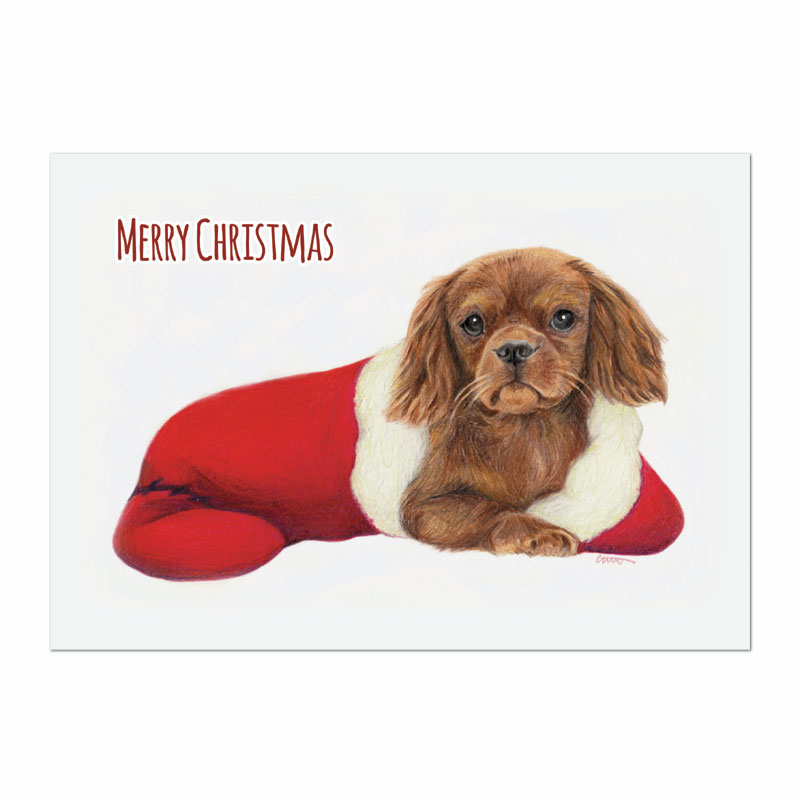 Brand new for Christmas 2017 - and exclusive to Cavalier Matters - this absolutely enchanting Ruby puppy in a warm and cosy Christmas stocking. The card is blank inside to write your own message.