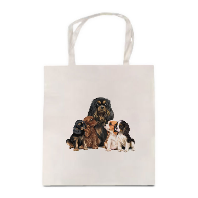 Satin Cream Mum & Pups Cavalier Tote Bag