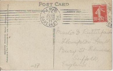 This comes in a wooden frame, and the back of the postcard, which is written on, can be seen through a glass panel at the back of the frame.